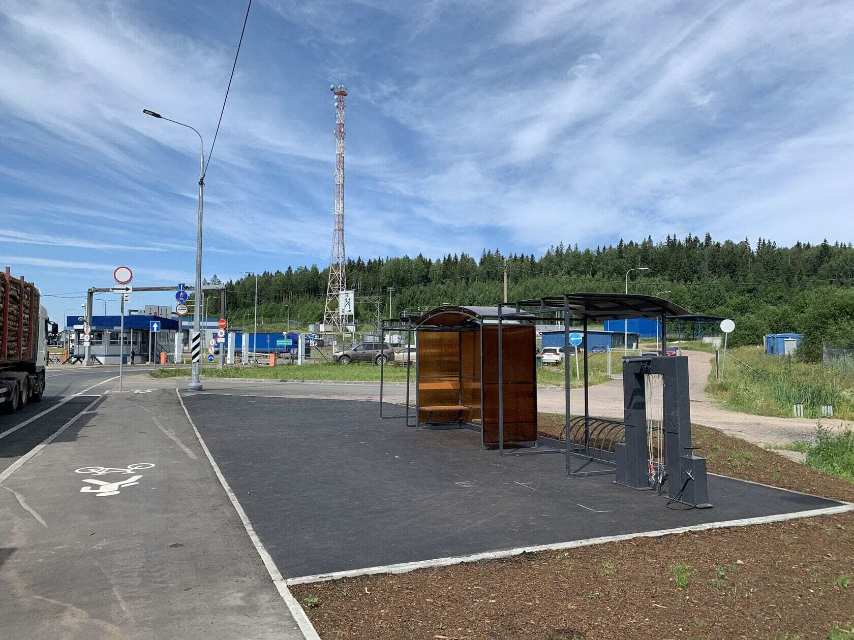 В рамках проекта строительства велодорожки на подъезде к МАПП «Светогорск» для велосипедистов теперь предусмотрена зона отдыха с павильоном ожидания и велопарковой, включающей зону для ремонта велосипедов. Непосредственно на территории МАПП выполнено обустройство велопарковок и велосипедных полос для движения велосипедистов.